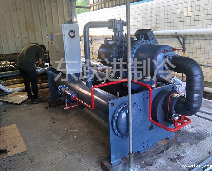 水冷机组制冷体系的底子组成设备工业冰水机在制冷进程中,冷凝器起着输出热能并使制冷剂得以冷凝的作用。从制冷压缩机排出的高压过热蒸气进入冷凝器后,将其在作业进程吸收的全部热量。